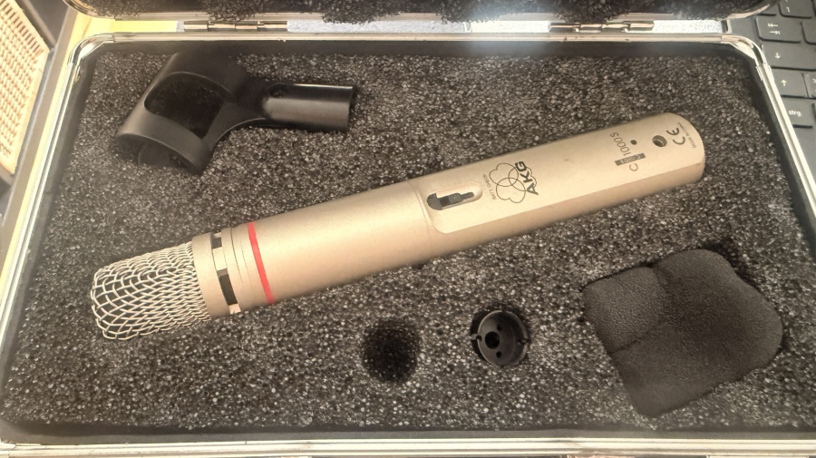 AKG C1000S — ein kompaktes Kleinmembran-Kondensatormikrofon, das sich wegen seiner Vielseitigkeit sowohl für Studio- als auch Live-Aufnahmen eignet: Mit umschaltbarer Richtcharakteristik (Niere ↔ Hyperniere), einem Frequenzbereich von 50–20 kHz und der Möglichkeit, es entweder per Phantomspeisung oder mit Batterie zu betreiben.