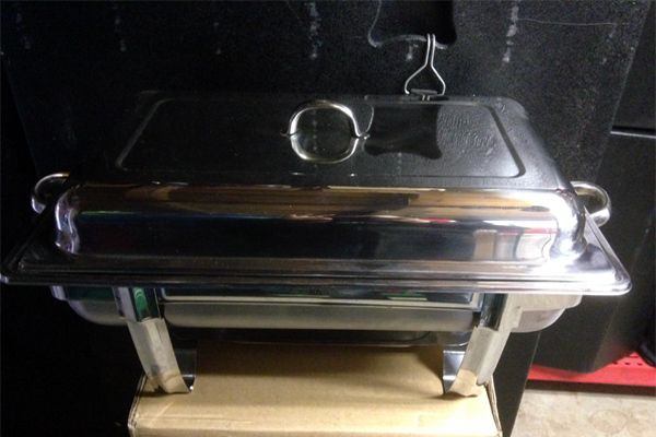 Gläser, Geschirr, Teller, Schüsseln, Glühweinkocher, Kaffeemaschinen, Fritteusen, Kühlschränke und Chafing Dishes.