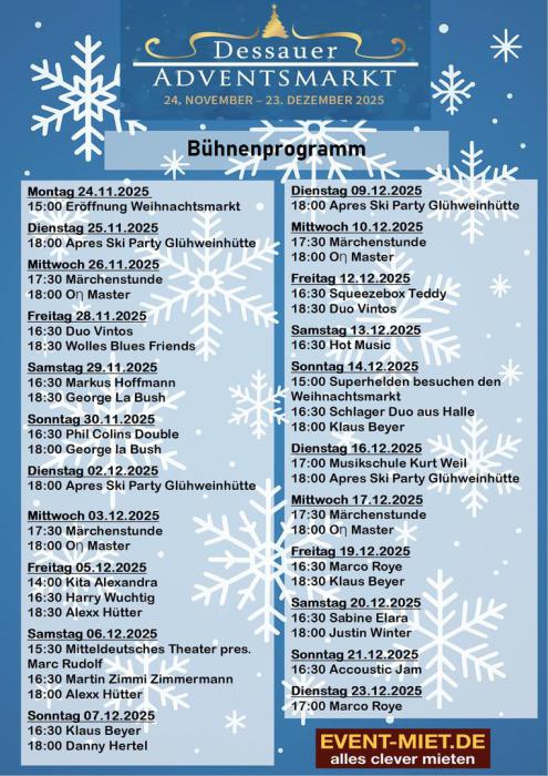 Auch in diesem Jahr verwandelt sich die Dessauer Innenstadt in ein festliches Wintermärchen voller Lichterglanz, kulinarischer Genüsse und einzigartiger Erlebnisse für Groß und Klein.